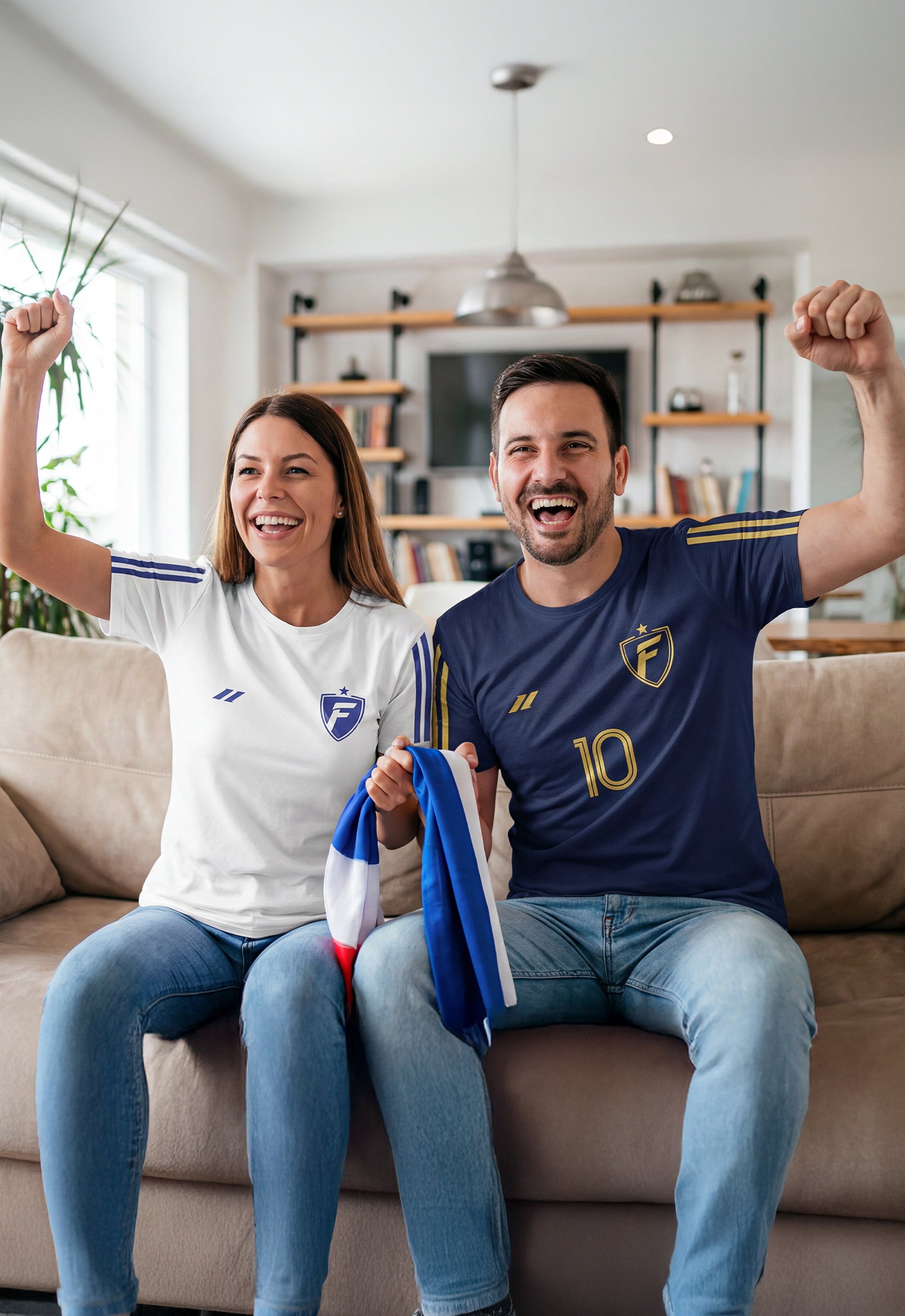 Des maillots de football personnalisés pour elle et pour lui.
